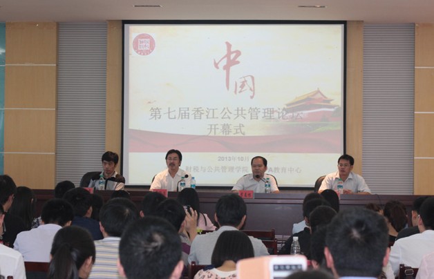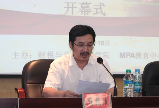 蒋经法代表校党委、行政对论坛开幕表示热烈的祝贺,他说,“香江公共管理论坛”是江西财经大学每年一届的传统学术交流活动,是MPA学员、MPA教师们的一次盛会,伴随着我校MPA教育的同步发展,已经成为江财MPA教育的一个品牌。以往六届论坛学院邀请到国内外具有颇深学术造诣的教授、专家和具有丰富公共管理经验的实践部门领导前来做报告,包括前江西省人民政府副省长胡振鹏、全国公共管理硕士(MPA)教育指导委员会原秘书长朱立言、江西省发改委主任李安泽、中共宜春市委书记邓保生、浙江省国税局局长周广仁、江西省地税局局长王平、江西省社科院原院长汪玉奇、越南社会科学院中国研究所中国社会研究室主任黄世英共计50余人次与MPA学员共同研讨公共管理领域的前沿问题,探讨中国公共管理所面临的形势、任务和发展趋势,交流各自的新发现、新体会。本届论坛将邀请浙江省国税局局长周广仁、财政部驻赣专员办副专员顾华晔、重庆市两江新区管委会副主任商文江、江西省委党建领导小组办公室专职副主任王家龙、鹰潭市委办公厅主任叶剑、江西省纪委宣教室副主任徐华平、南昌市高新区党工委委员陈艳等七位专家来校举办学术报告,提供一个多元化的互动平台。蒋经法希望财税与公共管理学院、MPA教育中心借此契机,在社会各界和学校的共同支持下,将我校的MPA教育进一步办出特色与水平,办出声誉与影响。