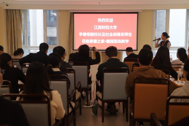 为使同学们加强对养老服务发展新动态的认识,加深对社会保障专业的感性认识,10月28日,我院《社会保障学》授课教师团队走进泰康之家•赣园养老社区开展现场教学活动。此次活动由副校长、《社会保障学》授课教师团队成员及课程思政带头人李春根教授组织,江西省养老服务与社会福利协会马林印会长、江西中医药大学医药卫生管理与政策发展研究中心执行主任郑先平副教授应邀出席,社会保障专业(方向)本硕博学生代表参加。