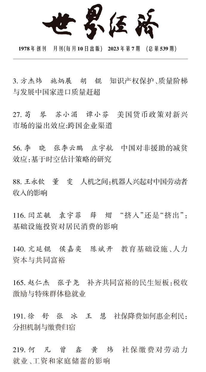 近日,财税与公共管理学院何凡博士合作的研究成果《社保缴费对劳动力就业、工资和家庭储蓄的影响》在权威期刊《世界经济》2023年第7期发表。