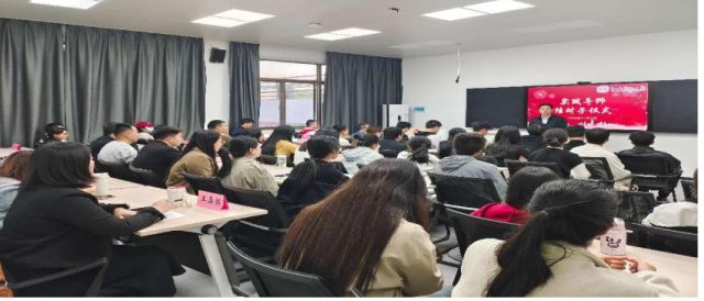 2024年11月2日下午,财税与公共管理学院24级行政管理班“双导师”制实施暨实践导师结对子仪式在研究生楼Y202教室正式举行。学院副院长兼班主任杨道田和24级公共管理(MPA)周末班、24级行政管理班的同学共计50余人参加了此次活动。会议由杨道田主持。