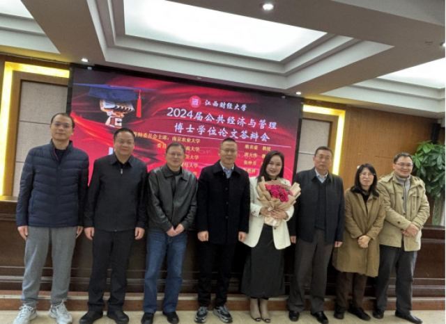 温柔、唐敏两位博士生进行了答辩,答辩委员会主席为南京农业大学欧名豪教授,答辩委员由江西师范大学唐天伟教授、江西财经大学张仲芳教授、陈胜祥教授、何植民教授,欧阳静教授、李胜副教授担任。