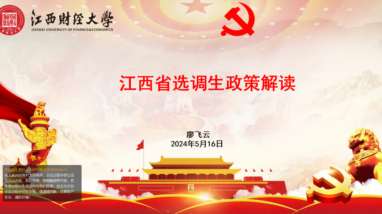 紧接着,廖云飞老师详细阐述了江西省选调有关政策的要求。具体从录用分配、试用期管理、基层锻炼这三个方面进行讲解,让同学们更深入地感受到选调生的工作实际。随后放出历年财税学院选调生分配情况,为同学们提供了未来职业选择的经验。