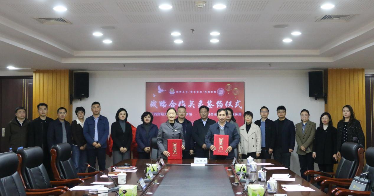 11月20日,江西财经大学与国家税务总局南昌市税务局正式签署战略合作协议,并共同为江西财经大学“校税合作实践教学基地”和“校税协同育人示范基地”揭牌。南昌市税务局党委书记、局长宋智江,党委副书记、副局长陈玉萍,江西财经大学党委常委、副校长袁红林,财政税务学院党委书记段远鸿和其它相关人员出席本次会议。此次合作标志着双方在人才培养、科研创新与实践应用深度融合方面迈出关键一步,旨在共同服务税收现代化与国家治理能力提升。