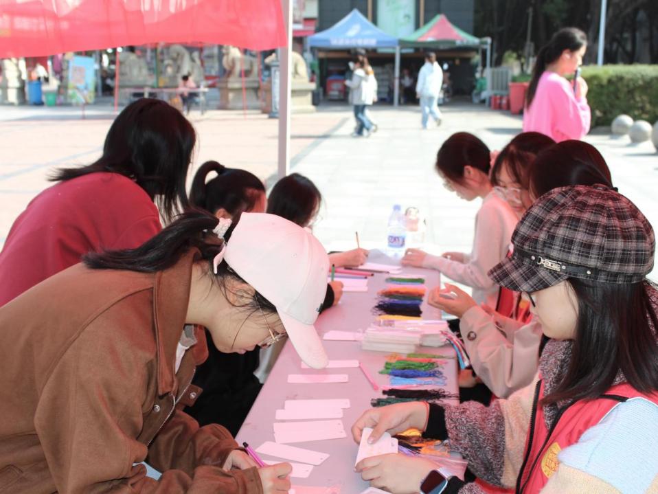 Tohelp students relieve academic and social pressure in the middle ofthe semester and guide them to relax and focus on the present, the"Express Creativity on Bookmarks, Decorate Beautiful Moments"activity, co-hosted by the Mental Health Promotion Association andthe Discipline and Security Department of the University StudentSelf-Discipline Committee of the School of Public Finance andTaxation, was held simultaneously at the entrance of the GrandAuditorium in the North District of Jiaoqiao Campus and the ChineseZodiac Square of Malu Campus on November 15, 2025. With handmadecreation as the carrier, the activity built a platform for studentsacross the university to relieve stress and stimulate creativity,helping them adjust their mentality and experience a peaceful andhealing spiritual journey in the warm autumnsun.