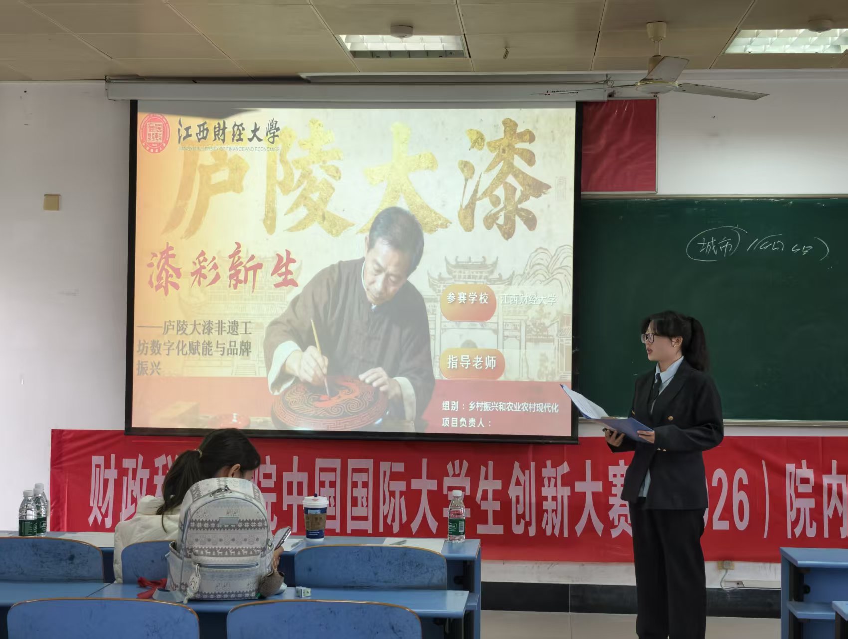 3月11日,财政税务学院2026年中国国际大学生创新创业大赛院级选拔赛在5424教室顺利举行。大赛吸引学院众多学子踊跃参与,赛事覆盖高教主赛道与青年红色筑梦之旅赛道两大板块,聚焦乡村振兴、数字健康、非遗活化、红色文化传播等热点领域。学院团委书记李婷婷受邀担任评委,全程为参赛项目进行专业点评与指导,赛事氛围热烈且严谨,充分彰显出财税学子创新活力与时代担当。