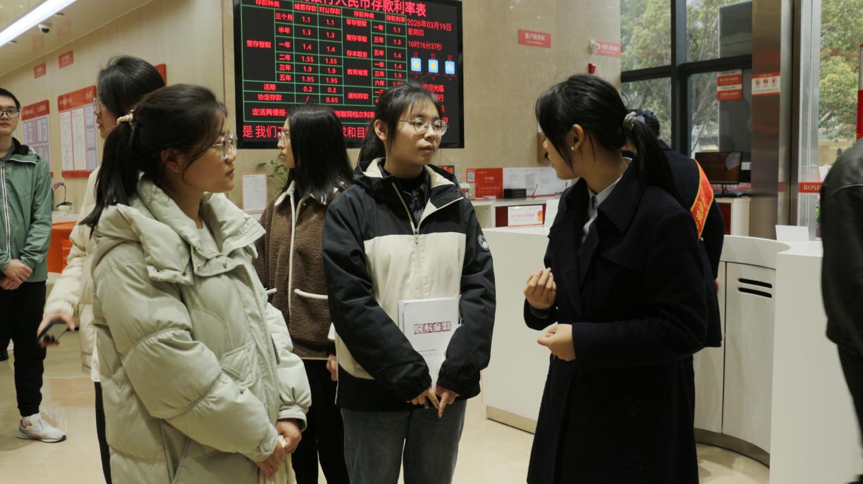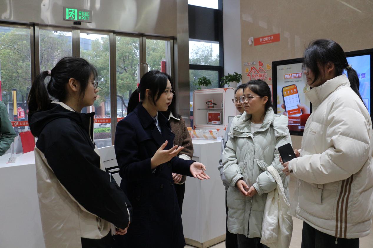 上饶银行南昌分行营业部对公金融部吴溆向师生们详细介绍了上饶银行的发展历程、核心业务板块及人才培养体系。交流环节双方围绕专业学习、职业规划、行业人才需求等话题展开交流,针对同学们提出的实习就业、岗位发展等方面的疑问行方进行了耐心细致的解答。交流结束后,师生们在银行工作人员的带领下先后参观了分行文化墙、办公区域、营业大厅等场所,实地感受银行的日常工作环境。