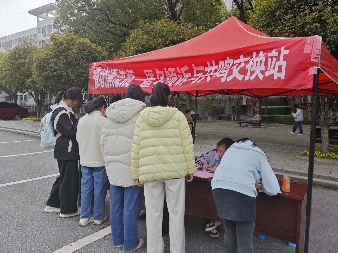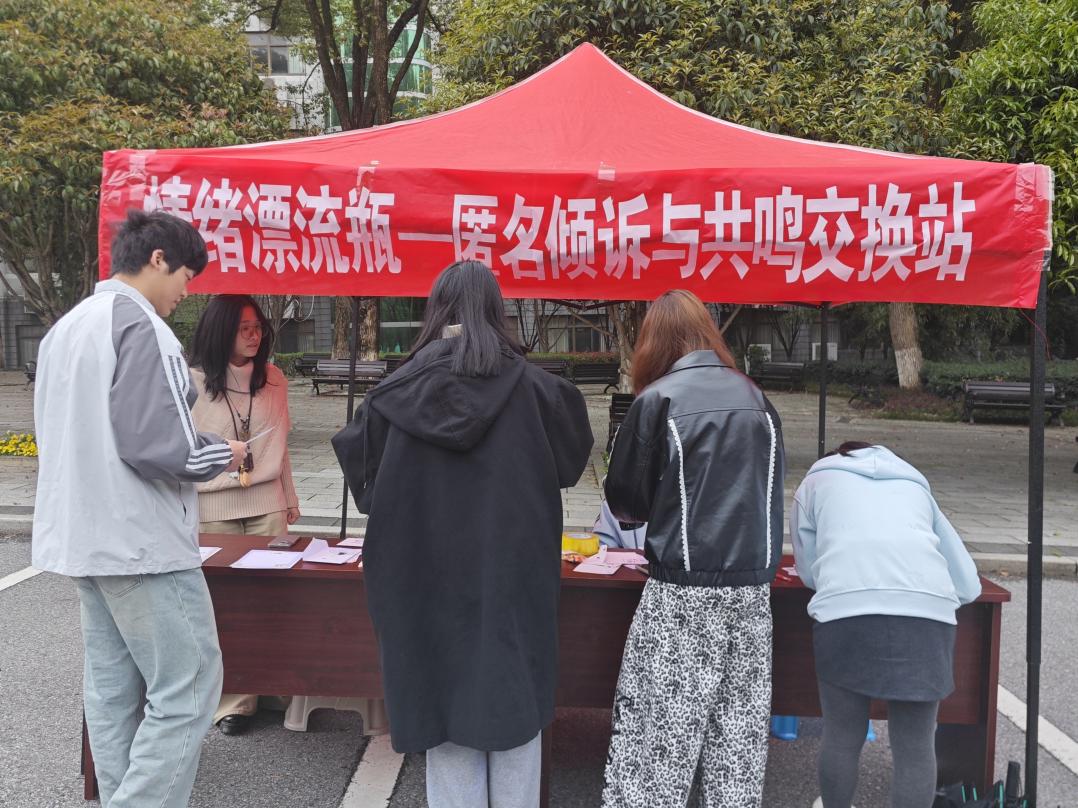 为积极落实新时代学生心理健康工作要求,关注大学生心理状态,疏解春季学期开学适应压力,3月28日,财政税务学院心理健康促进协会联合纪保部,在蛟桥园北区大礼堂门口、麦庐园十二生肖广场双校区同步开展“情绪漂流瓶——匿名倾诉与共鸣交换站”主题活动。