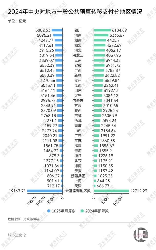 四川,2024年拿到的中央转移支付资金超过6000亿,稳稳地坐在了第一把交椅上;