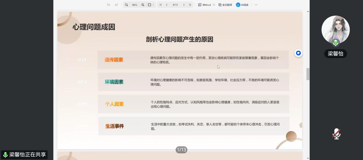 图 1税收244班梁馨怡同学正在剖析心理问题产生的原因