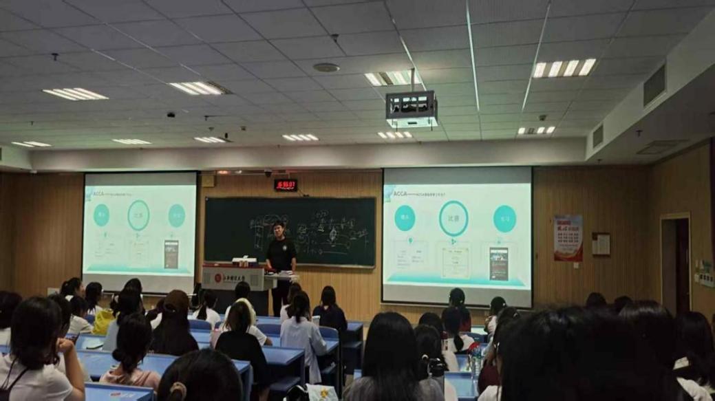 王永康学长分享了如何学习专业知识、提前修完学分的方法经验。同时,他还结合自己商赛冠军经历和优秀的四大实习经历,为同学们学习成长道路上提供具有参考价值的经验分享。