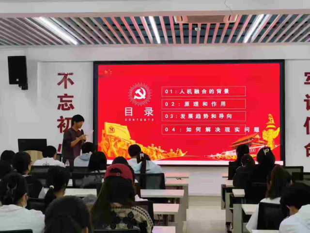 公共管理学院社保251班栾非凡同学作为首位主讲人,围绕国防科技领域,系统阐述了现代战争中人机融合指挥的背景、原理、核心作用及发展趋势。他强调,在人机融合指挥体系中,“人”是主导核心,“机”是智能支撑,二者并非简单的单向赋能,而是协同演进的新型作战指挥模式,共同构建高效、可靠、科学的现代化指挥体系。面对未来人机融合的挑战,他呼吁各方携手共建开放、协同的人机融合新生态。