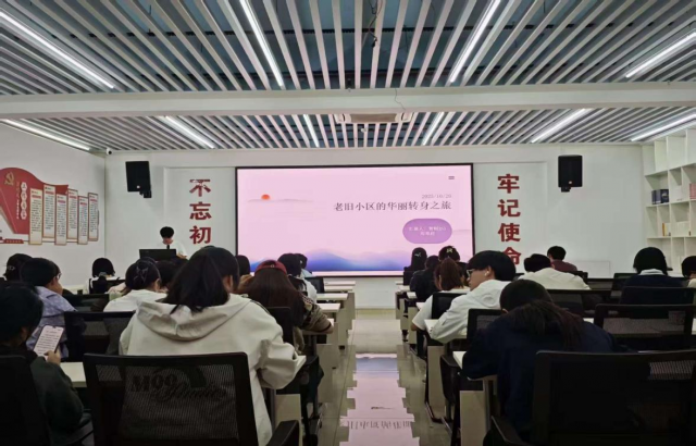 财政税务学院智财251班周郑超同学以住建部部长倪虹的发言为引,系统阐述了老旧小区改造的必要性、挑战、意义与社会影响。通过展示江阴市天鹅社区改造前后对比图,他生动呈现了改善人居环境对提升居民安全感与幸福感的重要作用。围绕改造过程中的创新路径,他分享了个人见解,并特别强调了科技进步在推动城市更新中的赋能价值。